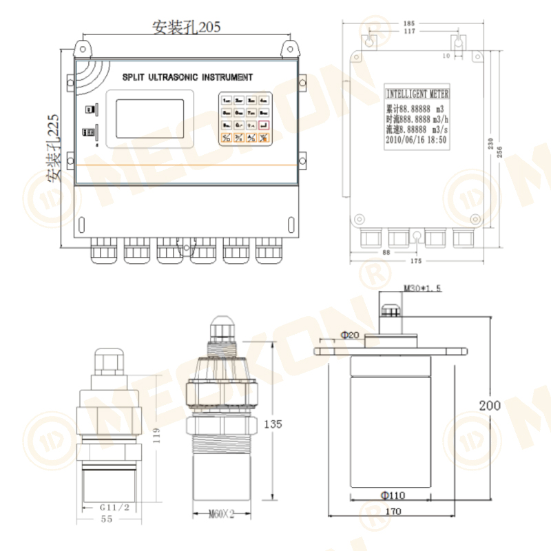 主要特點:分體式安裝 多種輸出方式分體式超聲波液位計 | ||