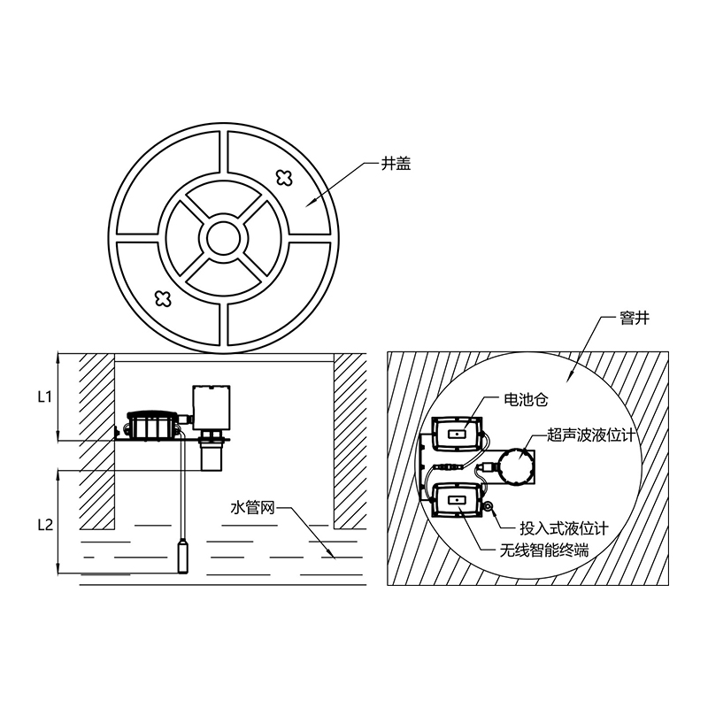 該系列監(jiān)測(cè)儀采用了超聲波液位計(jì)和投入式液位計(jì)雙傳感器終端對(duì)窨井水位進(jìn)行監(jiān)測(cè),既保證了水位的準(zhǔn)確性,同時(shí)也增加了設(shè)備的可靠性。